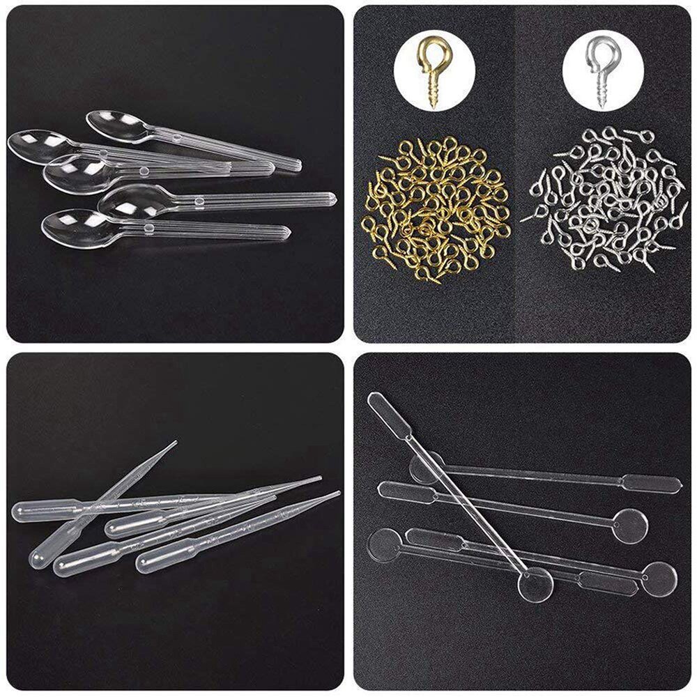 Silicone molds*13pcs + Dropper *5pcs + Spoon*5pcs + Stir bar*5pcs + Sheep eye nails * 200 pcs + Hand twist drill * 1 set