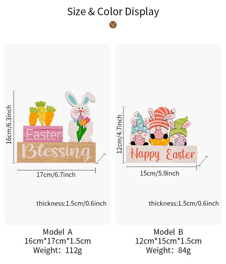 Wooden Easter Bunny and Gnome Ornament Decorations