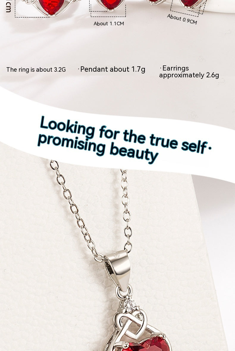 "My Passionate Heart" - Heart-shaped Imitation Ruby Jewelry Set