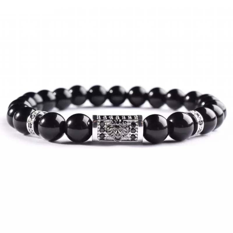 Vintage Bright Black 8mm Natural Stone Bracelet