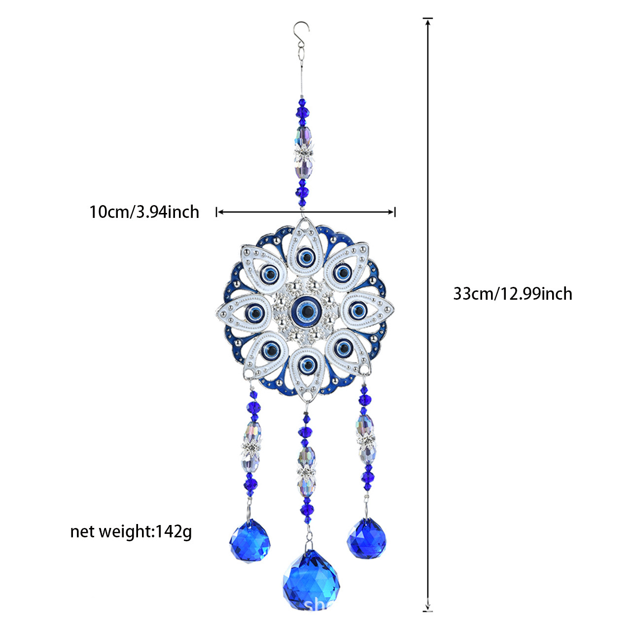 Purity style: Big Owl 110g/33cm, mother and child owl 105g/32cm, blue tear drops 62g/33cm, evil eye big flower 142g/33cm, evil eye color ball 113g/38cm